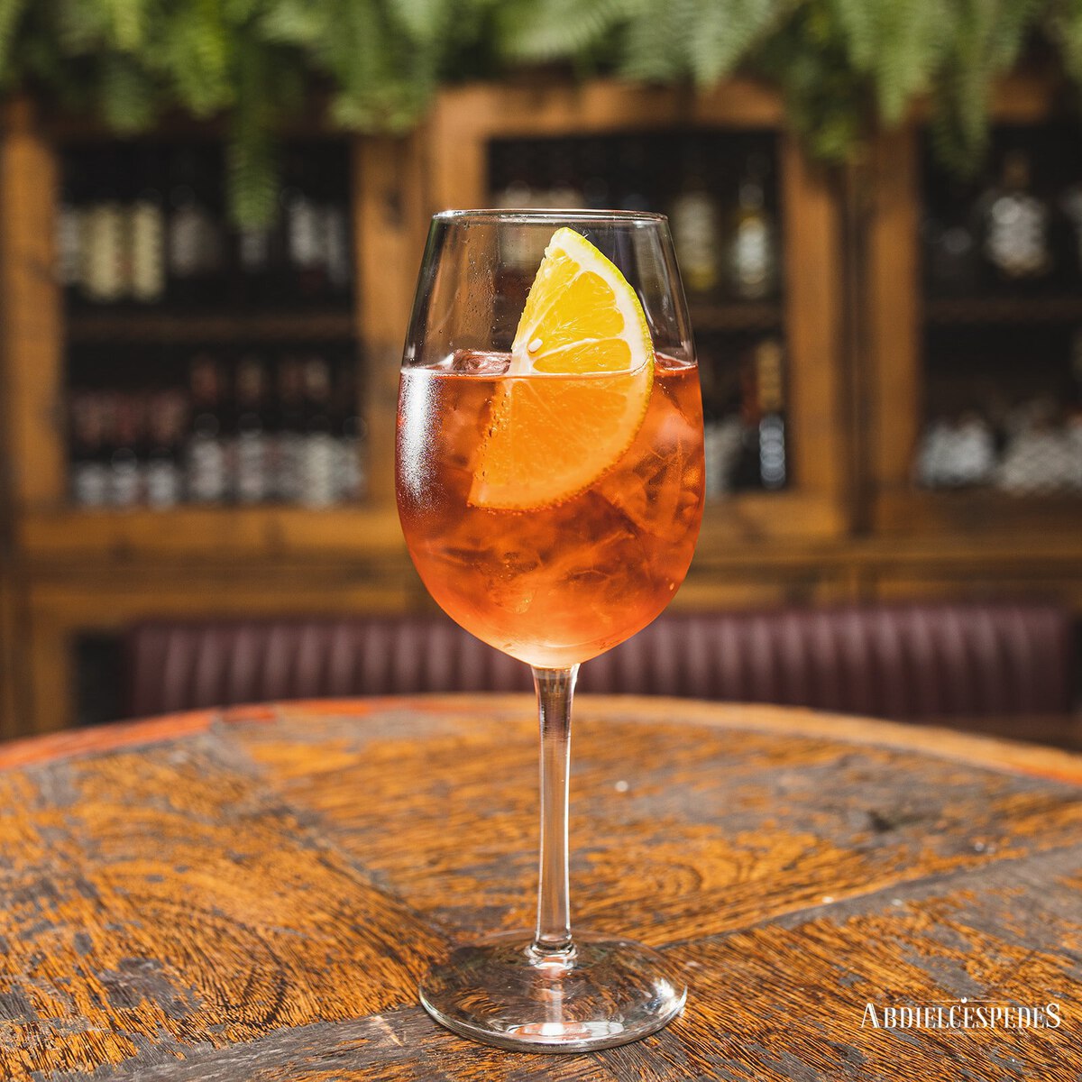 Aperol, Cinzano Pro Spritz, Soda y Naranja.